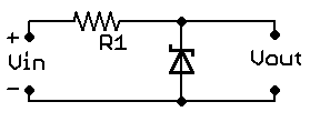 The concept is simple: zener diodes are specially designed to have a specific breakdown voltage (in my case 2 V) when put in reverse. The result is a 2 V voltage drop across the diode, and hence*, Vout*. Since I didn’t have a zener diode, I thought I would use a regular LED in its place, but placed in forward bias (so that it lights up).
