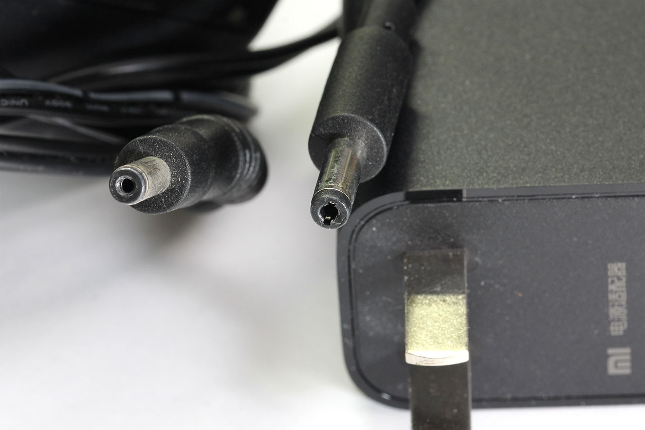 The Xiaomi adapter has a larger hole or inner pin, and also has retaining claws which are visible. This means the DIR-868L adapter cannot be used to power the Xiaomi, but the Xiaomi’s adapter can be used for the DIR-868L.